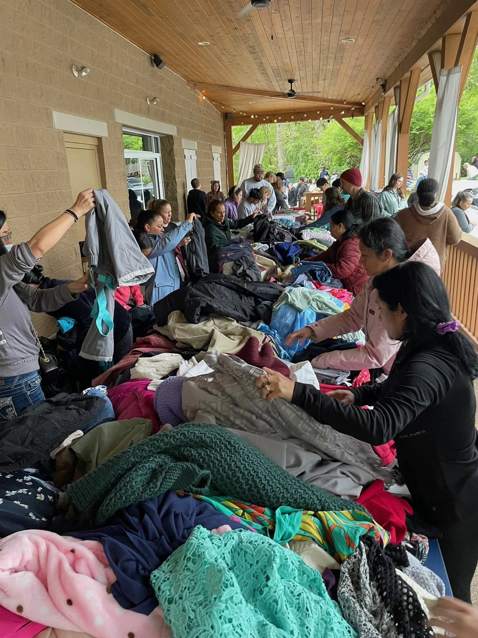 By Saturday morning, the excitement is building. Volunteers arrive at 8am to set up in the grassy area of The Yard. Tables fill, items are sorted, and people begin lining up early, eager to see what treasures await. From the outside, it looks like a yard sale—except for one key difference: everything is free.